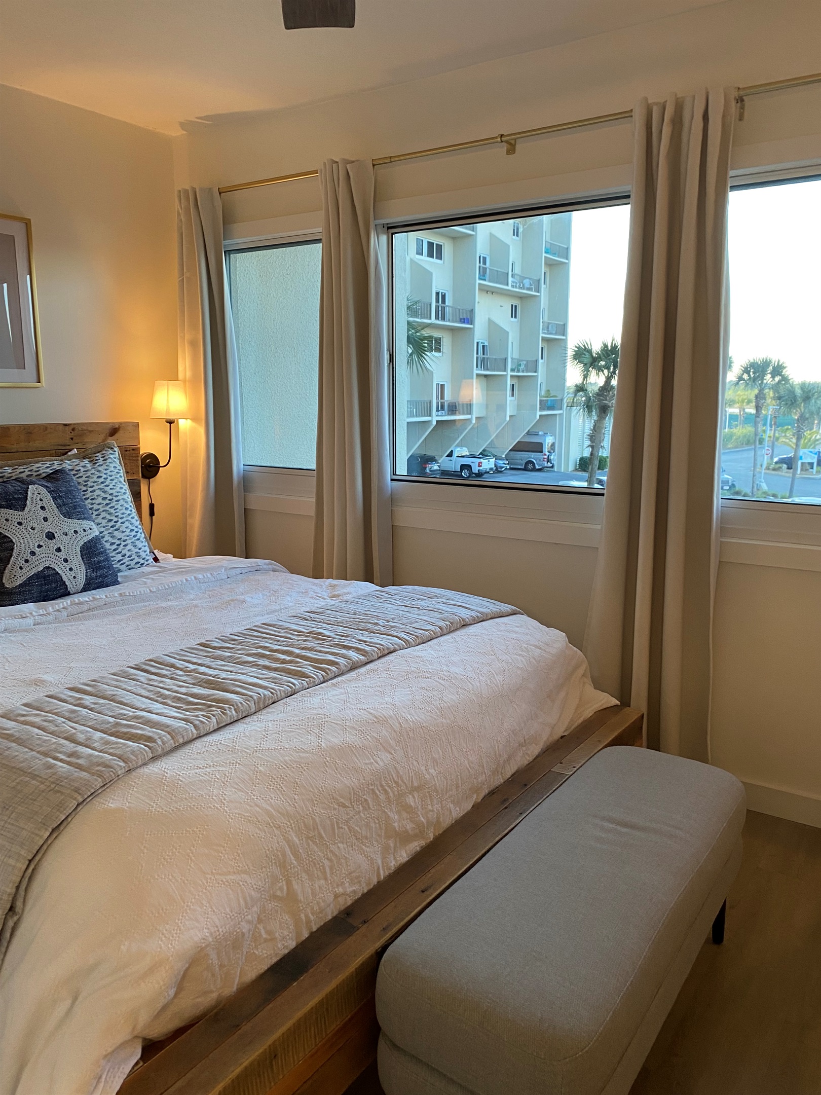 Master Suite: Features a king bed, private ensuite bath, and a private balcony directly overlooking the emerald waters of the Gulf.